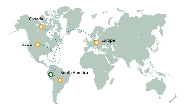 Typical Products exporta desde Perú a diferentes partes del mundo dentro de Europa, Canadá, Estados Unidos y Sudamérica.